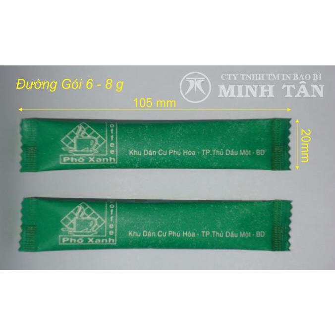 Quảng bá hình ảnh thương hiệu với Đường gói mẫu 9 Minh Tân. Kích thước 105x20mm. đóng đường trắng, đường vàng, đường kiêng trọng lượng từ 6g đến 8g. In trên giấy màng phức in 1 màu hoặc 2 màu, thiết kế theo yêu cầu quý khách.